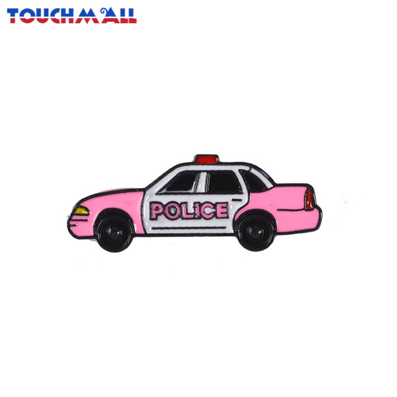 Tm Pink Police Car Brooch Cartoon Car Pin Creative Metal Brooch